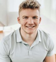 A paved road with a bicycle lane marked by a white bicycle symbol is visible. The road is lined with trees and shrubs, with a few cars and a cyclist in the distance. The traffic lights are green, and the sky is partly cloudy with patches of blue.